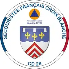 Logo Croix Blanche 28 avec croix rouge et chiffre 28 au centre sur fond blanc